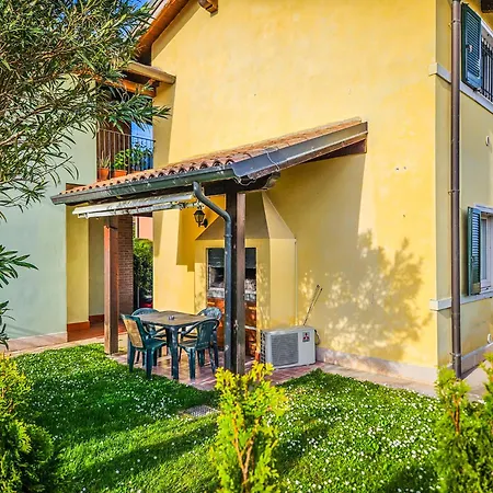 10 Minuti Da Gardaland Con Piscina E Giardino Lägenhet har uteplats och sitthörna, samt bekvämligheter som luftkonditionering. Detta boende erbjuder en bidé, en separat toalett och en dusch för ökad komfort.